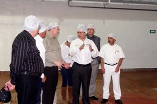 Durante el recorrido, el dueño de la empresa, Juan Brown, explicó al Gobernador el proceso de elaboración de un queso que va desde la extracción de la leche, pasteurización, sustracción del suero, cuajado, prensado, refrigeración y empaquetado que tarda 24 horas.