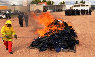 Posteriormente a la presentación de los cursos se realizó el protocolo oficial de la incineración de uniformes obsoletos, en las mismas instalaciones de la dirección de Seguridad Pública Municipal.
