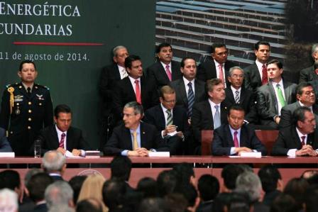 El Ejecutivo Federal dijo que con la expedición de las leyes secundarias la Nación reafirma la soberanía sobre Pemex y la Comisión Federal de Electricidad, los hidrocarburos en el subsuelo y la renta petrolera, al tiempo que se abren las puertas a la inversión para un mejor aprovechamiento de los recursos.