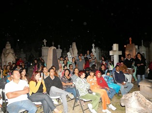El Instituto Zacatecano de Cultura se hizo también presente en esta “Noche Tenebrosa”, a través de José Luis Álvarez Núñez, coordinador de Difusión Municipal, quien conjuntamente con los expectantes, disfrutó de la ambientación que se hizo entre las lápidas, mausoleos y monumentos de este histórico panteón.