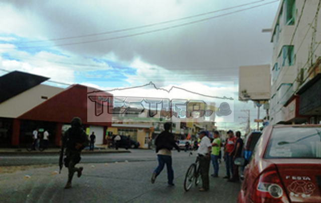 Todos los comerciantes comenzaron a cerrar sus establecimientos, ello ante el temor que se fuera a desatar una situación de mayor grado, y en fracción de segundos Marinos, Militares, Estatales y Municipales comenzaron a rodear el centro de la Ciudad en busca del tercer sujeto que logró escapar.