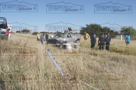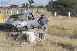 El accidente ocurrió en el tramo de la carretera Félix U Gómez Fresnillo, frente a las instalaciones de la “Leche Real”, donde una camioneta en que la transportaban una máquina impresora salió del camino para después volcarse.