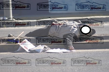 El sujeto quedó boca arriba con sus manos extendidas arrojando los periódicos que traía entre ellas, portaba también un chaleco que una de las empresas periódicas le había dotado, para la fácil comercialización del mismo.
