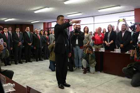 En sesión solemne de Cabildo, Alfredo Salazar de Santiago tomó protesta como Alcalde sustituto del Gobierno capitalino, en una ceremonia que fue presidida por el Gobernador de Zacatecas Miguel Alonso Reyes y Diputados Locales de la 61 Legislatura del Estado.