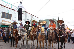 En su caballo español Pepe Pasteles, al lado del gobernador del estado Miguel Alonso Reyes, encabezó el inicio de la tradicional cabalgata partiendo del puente del Río Grande y recorriendo la calle principal a paso lento, saludando a quienes observaban desde sus palcos y banquetas el recorrido de los cabalgantes.