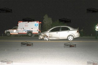 El accidente ocurrió en el tramo Fresnillo-Río Florido, justamente bajando el puente del crucero Las Palmas, un vehículo marca Chevrolet línea Aveo con placas de Zacatecas, tripulado por un menor de edad de quien se omite su nombre por esas misma razones, envistió en forma brutal a dos hombres que viajaban en su motocicleta.