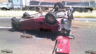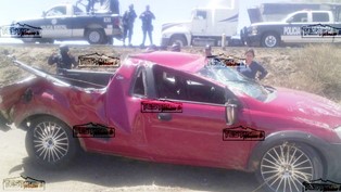 En primer lugar dos jóvenes que viajaban en una camioenta de la linea Tornado en color rojo, por esquivar según su conductor un mofle que se encontraba el centro de la carretera, sale de la misma, se sube al talud y volca en forma aparatoza en repetidas ocasiones, lo que generó que la camioneta con placas de Zacatecas ZF – 22- 420 quedara destrozada.