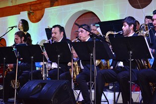 Bajo la dirección de Luis Herrera Alvarado director la gran banda de Jazz, los 5 saxofones, 5 trombones, 4 trompetas, contrabajo, piano, batería y voz ofrecieron una excelente presentación con el mismo programa del festival congrefest internacional de jazz universitario, donde la banda debutó hace unas semanas.