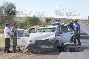 El taxi marcado con el número 2 que brinda servicio de Fresnillo a la colonia Hidalgo de Ojuelos se acabó literalmente al chocar de frente contra unidad de las mismas condiciones, en el lugar paramédicos atendieron a algunos pasajeros que resultaron con diferentes golpes.