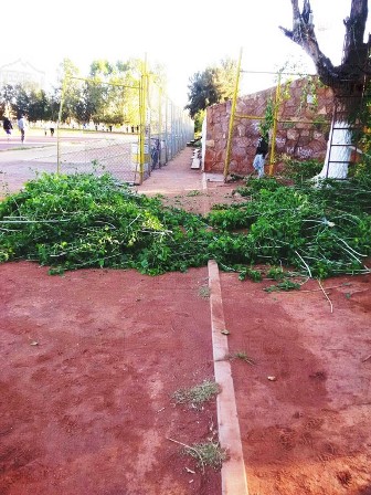 Con frecuencia instituciones educastivas acuden a dicho lugar para relizar eventos deportivos, y por lo general los directivos instalan la mesa de honor y premiación frente a ese árbol que daba una frondosa sombra, sin embargo con la acción realizada ésta mañana se daña el pulmón de esa parte de la Ciudad.