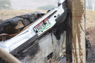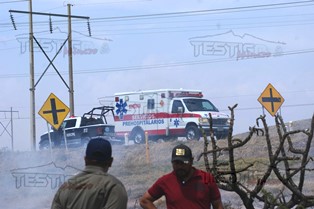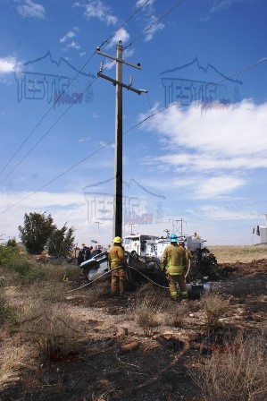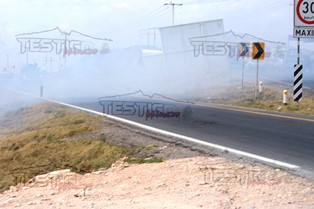Al parecer la camioneta circulaba de norte a sur con dirección a Fresnillo, cuando de pronto su chofer salió del camino volcó y se impactó contra un poste de C.F.E., del cual una de las cuchillas cayó generando un corto circuito cuyas chispas cayeron en la camioneta generando el incendio de la misma.