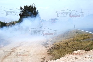 Campesinos y personas que circulaban por el lugar ayudaron al chofer herido a salir de la unidad, mientras que personal de bomberos llegó a brindarle la atención médica y a sofocar el fuego del que se tenía temor generara la explosión del tanque de gas que portaba la misma unidad.