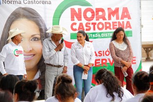 Fresnillo, Zac.- Como parte de su recorrido por comunidades y colonias del V Distrito, Norma Castorena, candidata a diputada local, por el Partido Revolucionario Institucional (PRI) y la coalición Zacatecas Primero tocó casa por casa en las colonias Casas Torres, del Sol, Felipe Ángeles, Felipe Monreal y San Joaquín para saludar a los vecinos y conocer las necesidades más apremiantes de estos sectores habitacionales.