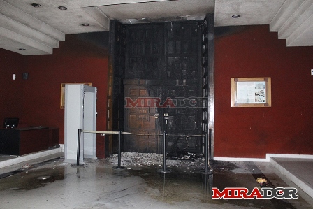 La puerta de la sede del Poder Legislativa sólo resultó con daños menores, ya que únicamente quedó humeada, sin que su estructura quedara dañada.