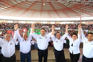 VILLA DE COS, ZAC.- De manera unánime los grupos parlamentarios del PRI y Partido Verde en el Senado de la República dieron su apoyo al candidato de la Alianza Zacatecas Primero, «los compromisos de Alejandro Tello los hacemos nuestros en el Senado, lo apoyaremos para que Zacatecas tenga los recursos suficientes para que el próximo gobernador cumpla con todos sus compromisos», así se pronunció Emilio Gamboa Patrón, en el acto de cierre de campaña en el municipio de Villa de Cos.