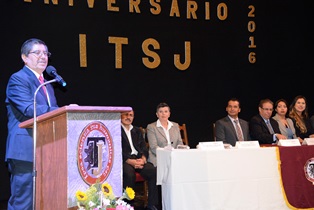 El director del ITSJ, Jesús Limones, agradeció la presencia del presídium y en especial del alcalde municipal Fernando Uc, así como del jefe del departamento de educación media superior Mario Cabral Gallegos, representante del Gobernador del Estado.