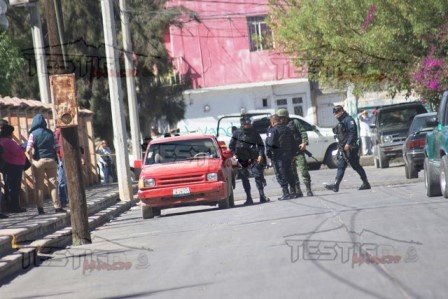 Elementos policiacos de los diferentes niveles de gobierno cercaron el perímetro, mientras sus compañeros reciban el interior y exterior de una camioneta color rojo, con placas de Jalisco JK-29-215, así como el arroyo de la calle y banquetas en donde quedaron esparcidos casquillos percutidos de diferente calibre.