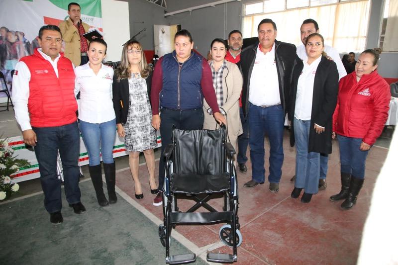 Sillas de ruedas, bastones, andadores, muletas y pañales desechables para personas adultas fueron distribuidos entre decenas de beneficiarias y beneficiarios procedentes de varias comunidades de este municipio.