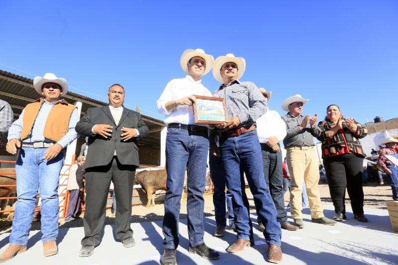El Gobernador Tello, además, entregó apoyos en el ámbito de la ganadería para el beneficio de productores de Sain Alto, Chalchihuites, Jiménez del Teúl y Sombrerete. Dio apoyos para la compra de 70 toros.