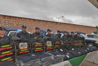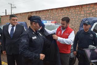 Parte del apoyo se vio reflejado en la entrega de cuatro patrullas pick up, 250 uniformes, 100 fornituras, 100 impermeables, 100 chamarras; además se entregaron 30 chalecos y 30 cascos; 20 coderas, rodilleras, candados metálicos y gogles tácticos. Otra parte de los recursos fue utilizado en la aplicación de 71 evaluaciones a elementos de nuevo ingreso, así como evaluaciones de permanencia.