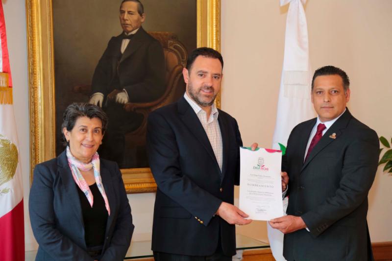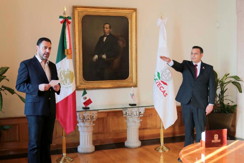 Zacatecas, Zac.- El Gobernador Alejandro Tello Cristerna tomó protesta a Luis Hugo Núñez Bermúdez, como nuevo Coordinador Estatal de Bibliotecas, quien, a partir de este miércoles, se encarga de acercar estos espacios culturales a las familias de los 58 municipios del estado.