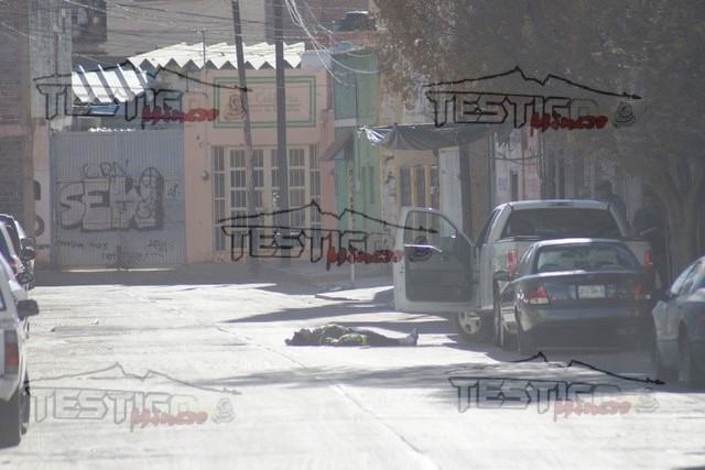 Alrededor de las 9:00 horas, al sistema de emergencias (911 Fresnillo) reportan persona sin vida por impactos de arma de fuego, reporte anónimo en el cual menciona que sobre la calle Genaro Codina esquina con la calle Lázaro Cárdenas de la zona centro del municipio de Fresnillo se escucharon detonaciones de arma de fuego y posteriormente se percató de que en dicho lugar se encontraba un masculino al parecer ya sin vida con impactos de arma de fuego en la cabeza a un costado de una camioneta de la marca Ford Lobo de color blanco, por lo que solicitan el apoyo de las autoridades en el lugar, al acudir confirman que se trata de un masculino sin vida, quien se encuentra por el momento sin ser identificada