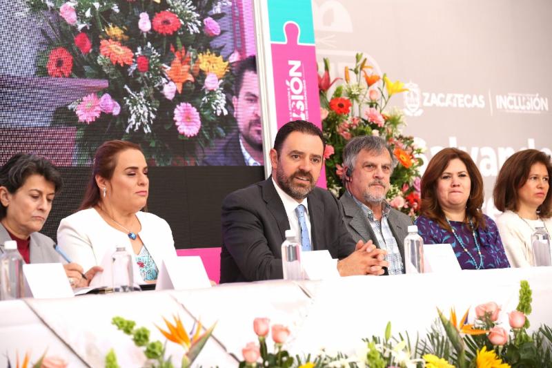En el evento también estuvieron presentes: la Directora del Instituto para la Atención e Inclusión de las Personas con Discapacidad, María de Lourdes Rodarte Díaz; la Secretaria de Educación de Zacatecas, Gema Mercado Sánchez; la Secretaria General de Gobierno, Fabiola Torres Rodríguez; y la Presidenta Estatal de Derechos Humanos, María de la Luz Domínguez Campos.