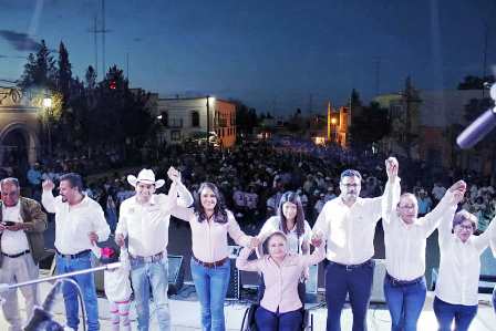 Fresnillo, Zacatecas. Como parte de su recorrido por municipios que comprenden el Distrito 1 Federal la candidata por la Coalición “Todos por México” Norma Castorena acudió al arranque de campaña del candidato a presidente municipal de Cañitas de Felipe Pescador Arón Rodríguez en el jardín principal, donde Castorena brindó el respaldo a sus compañeros de fórmula ante simpatizantes.