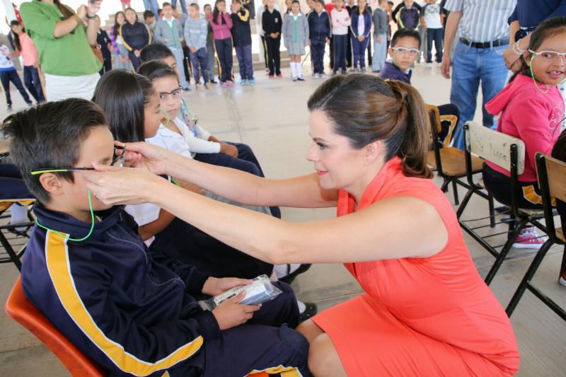 85 estudiantes de las escuelas primarias: 8 de Septiembre de la colonia Europa y Francisco García Salinas de la colonia Centro, recibieron de manos de Cristina Rodríguez de Tello, lentes adaptados y de alta tecnología, luego de haber sido detectados con problemas de la vista como miopía, astigmatismo e hipermetropía.