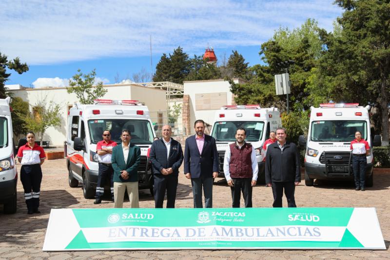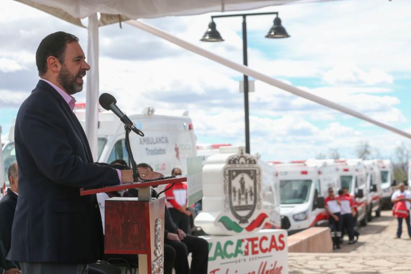 Por su parte, el Secretario de Salud, Gilberto Breña Cantú, destacó la gestión hecha por el mandatario ante el Seguro Popular para la compra de 21 ambulancias de traslado y cinco de urgencias médicas avanzadas. «Sin duda, llegan a fortalecer el trabajo y el compromiso en beneficio de la salud de los zacatecanos».