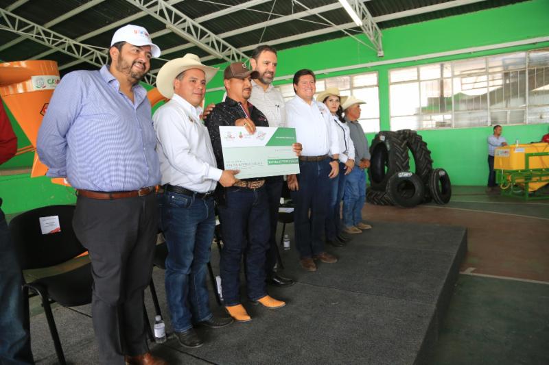 Respecto de las acciones para el campo, el titular del Ejecutivo entregó apoyos por 5 millones 639 mil pesos del Programa Concurrencia, entre los que destacó llantas para tractor, arados, aspersoras, bordeadoras agrícolas, molinos y palas mecánicas.