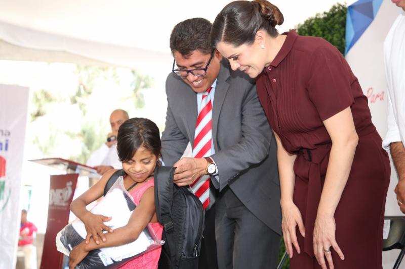A nombre del Gobernador Alejandro Tello, la Presidenta Honorífica del Sistema Estatal para el Desarrollo Integral de la Familia (SEDIF), Cristina Rodríguez, y el alcalde Saúl Monreal Ávila, entregaron más de 480 apoyos entre bicicletas del programa Ayúdame a Llegar a mi Escuela; cobijas; colchones; material deportivo, uniformes y lentes del programa Una visión DIFerente.
