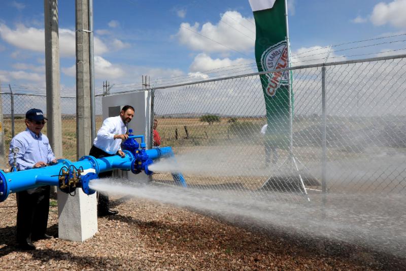El Gobernador Alejandro Tello y Benjamín de León Mojarro, director de la Junta Intermunicipal de Agua Potable y Alcantarillado (JIAPAZ), pusieron en marcha esta fuente de abastecimiento y anunciaron el equipamiento del Pozo 10, lo que en suma ha implicado una inversión de 4 millones de pesos.