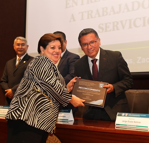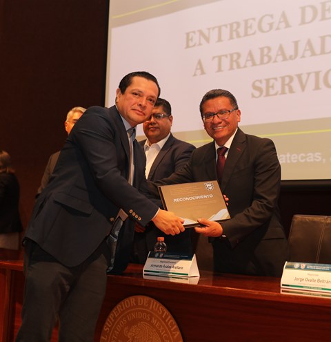 Dichos reconocimientos fueron entregados por el Magistrado Armando Ávalos Arellano, la Licenciada Ma. Concepción García Almeida, Oficial Mayor del TSJEZ, el Licenciado Miguel Ángel de Jesús Toribio Bañuelos, Secretario General del SUTSEMOP, el Secretario Seccional del Poder Judicial del Estado de Zacatecas, Juan Antonio del Hoyo Ávila y el Magistrado Jorge Ovalle Beltrán, integrante de la Segunda Sala Civil del TSJEZ.