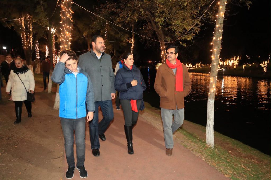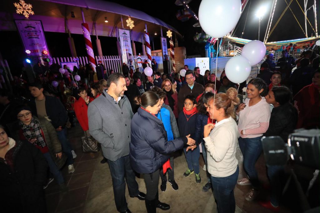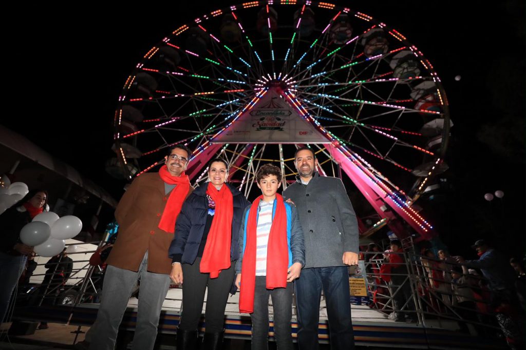 El Gobernador Alejandro Tello y la Presidenta Honorífica del Sistema Estatal DIF, Cristina Rodríguez, abrieron este nuevo producto turístico navideño, al ofrecer al público la atractiva rueda de la fortuna, instalada en este parque, donde además existen exhibiciones sin costo de cine familiar en el Foro del Lago.