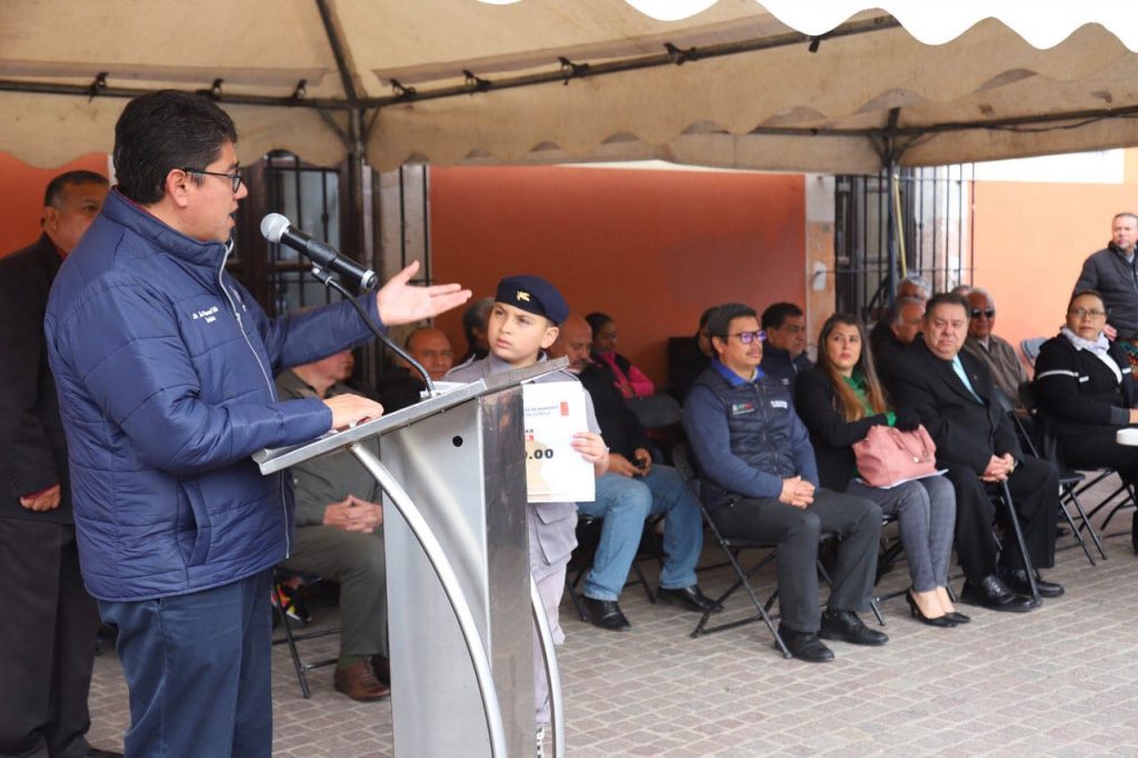 Fresnillo, Zac.- En el marco del Día de la Bandera el Ayuntamiento de Fresnillo realizó un concurso de Escoltas de Bandera al cual denominó Profesor Luis Enrique Pavón Zúñiga, que tiene como objetivo ensalzar los valores patrios y que se realizó en la Explanada de la Presidencia.