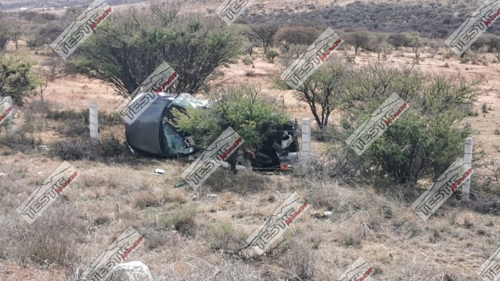 En el paraje conocido como Las. Cruzas, quedó volcado un carro Nissan Sentra xolor gris oxford, con placas de Zacatecas.