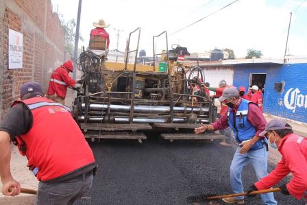 Trancoso, Zac.- La Secretaría de Obras Públicas (SOP) de Gobierno del Estado y el ayuntamiento de Trancoso mejoran vialidades de este municipio mediante trabajos de pavimentación con mezcla asfáltica, lo que permitirá darles un mejor aspecto y, lo más importante, mejorar la calidad de vida de los habitantes.
