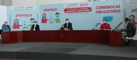 Finalmente, el Gobernador Alejandro Tello llamó a la reflexión a la población zacatecana para ser parte del descenso de contagios y de fallecimientos, que solamente se lograrán si se llevan al pie de la letra las indicaciones del sector salud, como son el uso de cubrebocas, mantener la sana distancia, lavarse las manos y, sobre todo, no realizar concentraciones masivas ni fiestas.