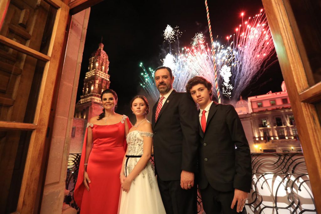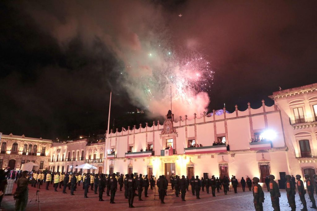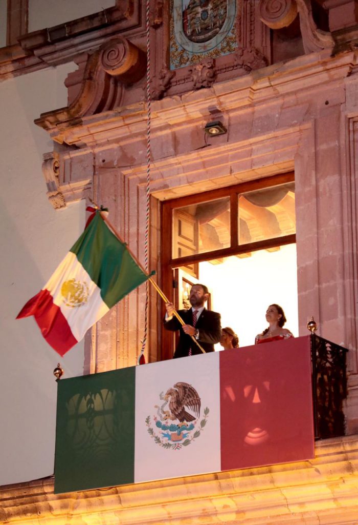 Y prosiguió con el tradicional: “Zacatecanas y zacatecanos, ¡viva la independencia de México! ¡Vivan los héroes que nos dieron patria y libertad! ¡Viva Hidalgo! ¡Viva Morelos! ¡Viva Allende! ¡Viva Aldama! ¡Viva doña Josefa Ortiz de Domínguez! ¡Viva Zacatecas! ¡Viva Zacatecas! ¡Viva México! ¡Viva México! ¡Viva México!”.