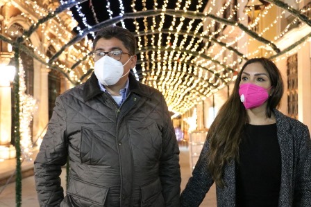 Fresnillo, Zac.- El rescate del Centro Histórico de Fresnillo ha sido una de las prioridades del alcalde, Saúl Monreal Ávila desde el inicio de su administración, por ello, este jueves, en compañía de su esposa, Lupita Pérez Vázquez, realizó la inauguración de 27 luminarias de tecnología LED en las calles Miguel Hidalgo y Allenda, lo que contribuye a darle vida a la Zona Peatonal.
