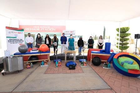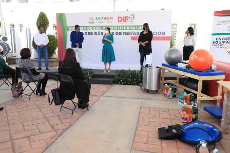 Río Grande, Zac.- Para atender adecuada y eficientemente a las personas con discapacidad, el Gobierno del Estado, a través del Sistema Estatal para el Desarrollo Integral de la Familia (SEDIF), apoya el trabajo de las Unidades Básicas de Rehabilitación (UBR) del territorio zacatecano y, este día, entregó equipo a las de los municipios de Miguel Auza, Juan Aldama, Francisco R. Murguía, Cañitas de Felipe Pescador y Río Grande.