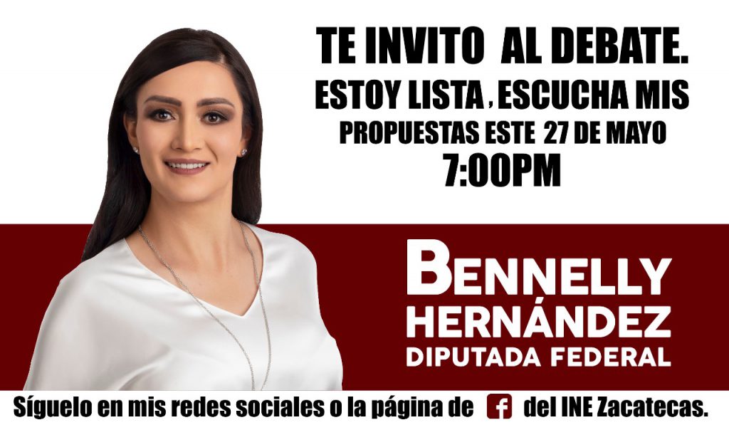 FRESNILLO.- Bennelly Hernández, candidata a Diputada Federal, manifestó estar preparada para participar en el debate que se llevará a cabo con los candidatos que contienen por el Distrito 1 Federal.