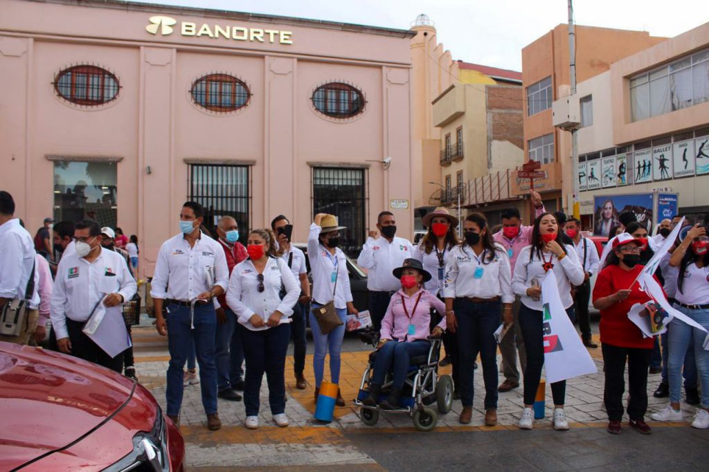 El candidato a Presidente Municipal, Javo Torres, junto al presidente Nacional del Partido Revolucionario Institucional, Alejandro Moreno Cárdenas “Alito”; de Claudia Anaya, candidata a gobernadora; Norma Castorena, candidata a la diputación federal; y las candidatas a diputados locales, Vicky Pereyra y Amelia Carrillo realizaron la actividad.