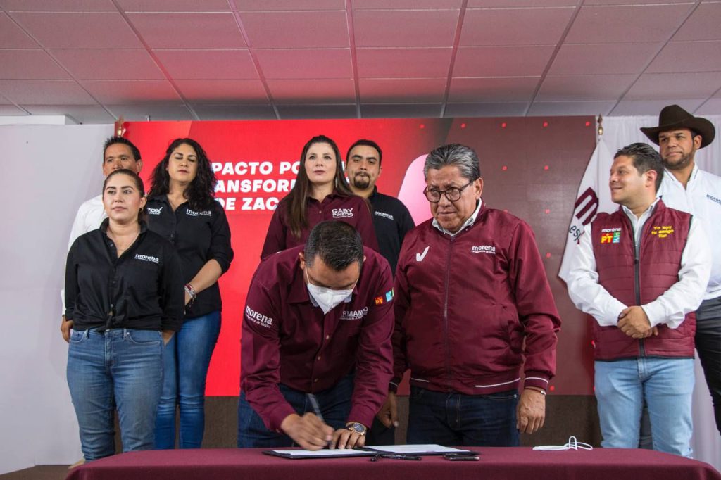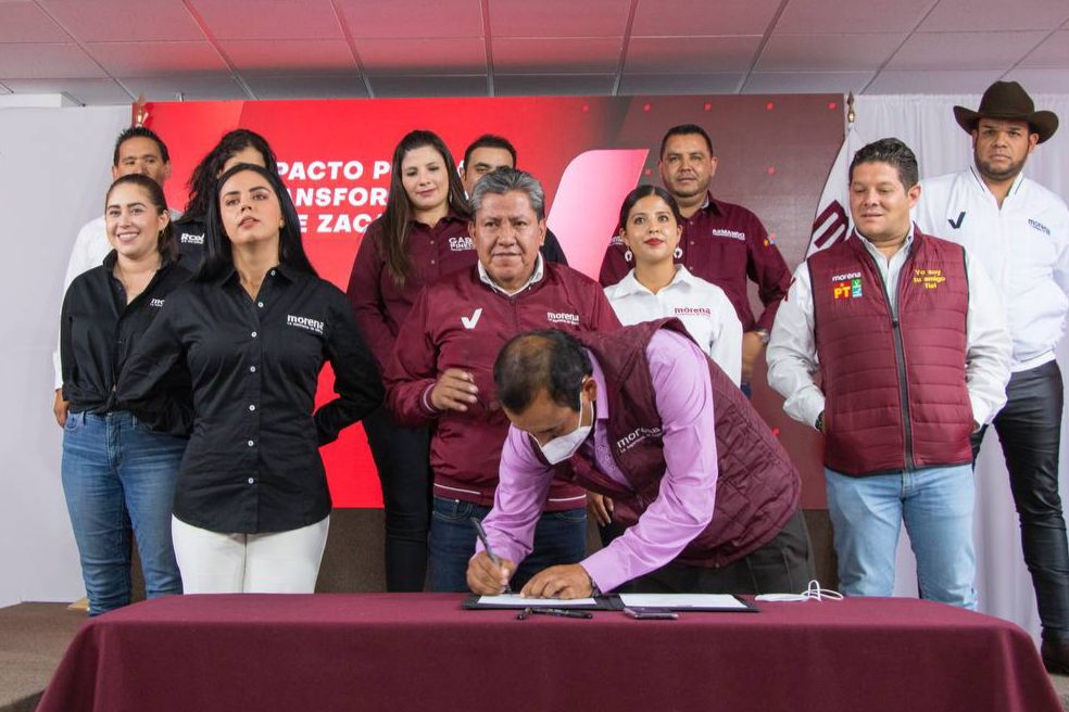 Además del abanderado a la gubernatura del estado, firmaron el pacto las candidatas y candidatos a diputados locales: Xerardo Ramírez, Gabriela Pinedo, Ernesto González, Violeta Cerrillo, Roxana Muñoz, Oscar Castruita, Cristal Pelayo, Alfonzo Contreras, Armando Delgadillo y Paola Morán, además del candidato a diputado federal. Marco Flores, en representación de los candidatos de la coalición a la Cámara Baja.