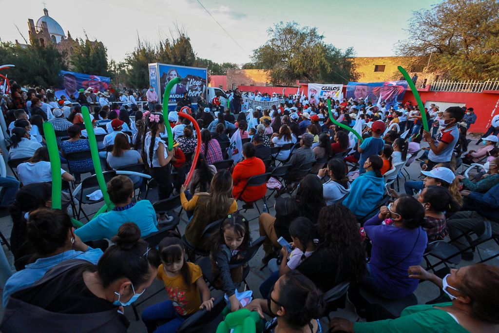 Durante el evento proselitista, los lugareños agradecieron a Claudia por sus gestiones para la construcción de la Unidad Básica de Rehabilitación, el libramiento a cañitas, el puente de la secundaria, las canchas de fútbol rápido de Villa de Cos, la rehabilitación del pozo de agua de la comunidad, el domo del Cobaez, la Casa de Adultos Mayores, entre otras obras que la próxima gobernadora gestionó para esta región cuando era legisladora.