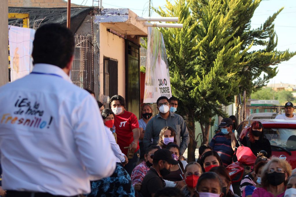Fresnillo, Zac.- Javo Torres Rodríguez, candidato a Presidente Municipal de Fresnillo, acudió a la Colonia Francisco Villa, expuso sus propuestas a los habitantes y destacó el proyecto de la Policía de Proximidad para Fresnillo.