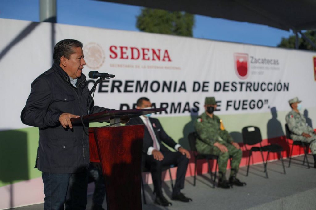 Se destruyeron aproximadamente 160 armas de distintos calibres, así como más de 20 mil municiones, mismas que fueron decomisadas en detenciones de personas, aseguramientos y otros hechos en todo el territorio zacatecano.