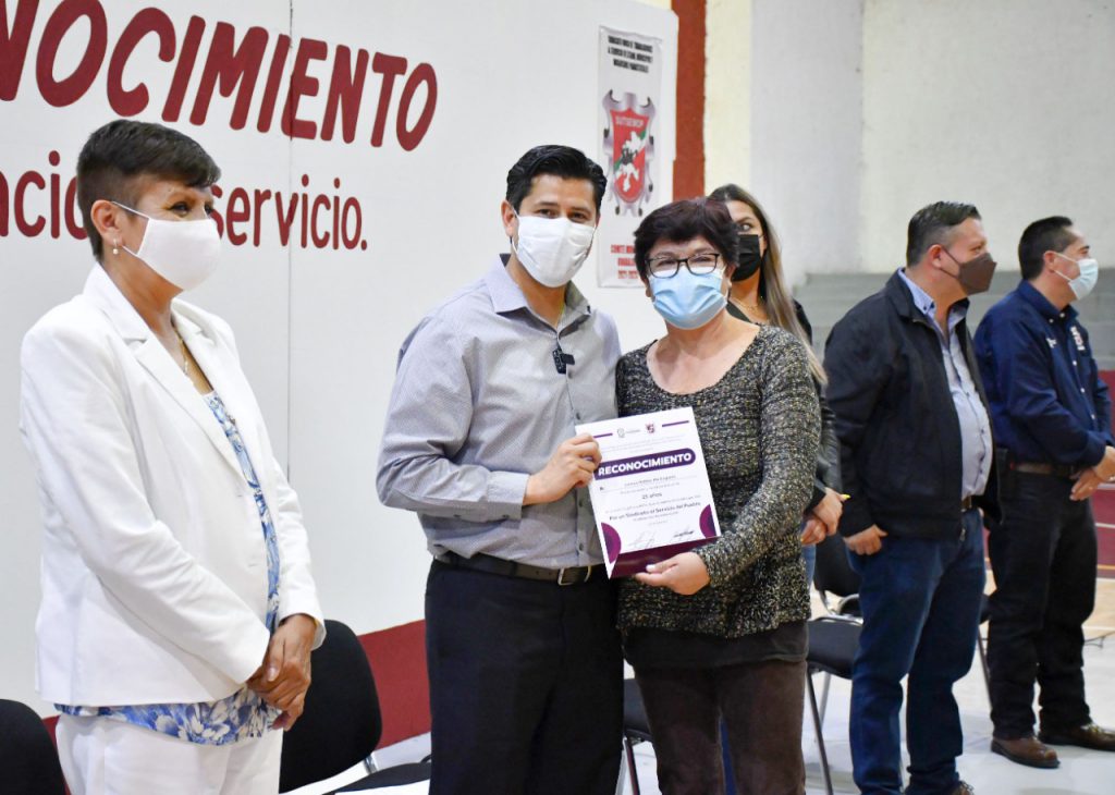 Por otro lado, Patricia Martínez Gaytán recibió reconocimiento por 30 años de servicio; Francisco Javier López Veliz, Ramón Diosdado Padilla y Jesús Castro Guevara, por 35 años.