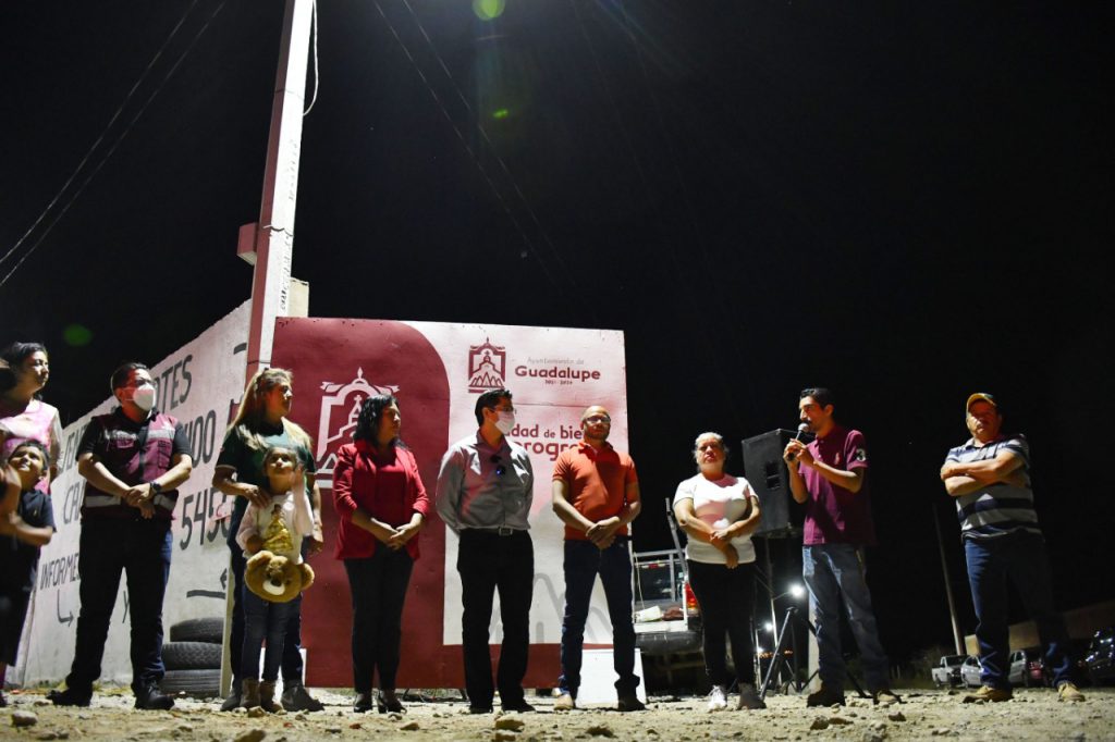 Interesado en mejorar la calidad de vida de las familias guadalupenses, el Presidente Municipal, Julio César Chávez, encendió la red eléctrica en las calles Morelos y Pinos de la Colonia Bugambilias, en la comunidad de Zóquite, ya muy cerca de Tacoaleche.